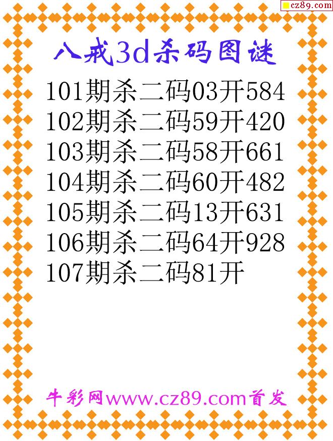 八戒杀码26107期3d原创图谜