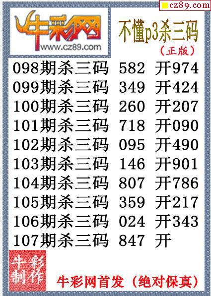 26年107期公孙梦体育彩票P3杀码图