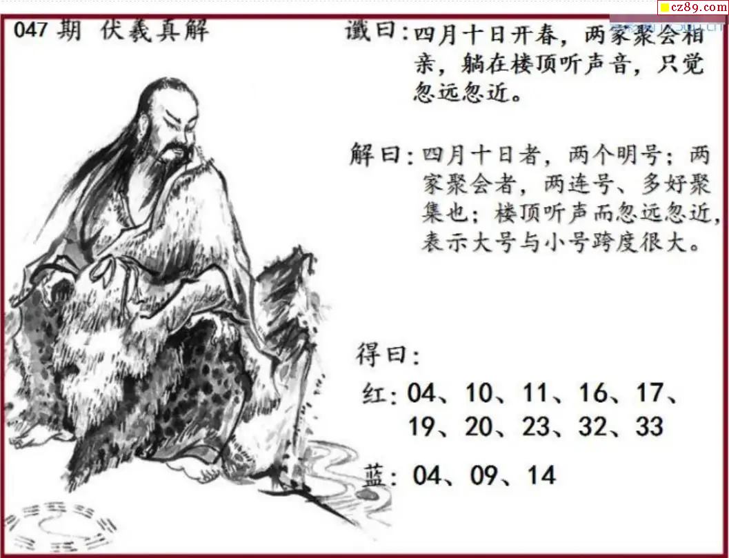 峨眉道姑杀蓝号047期双色球图谜 10中10