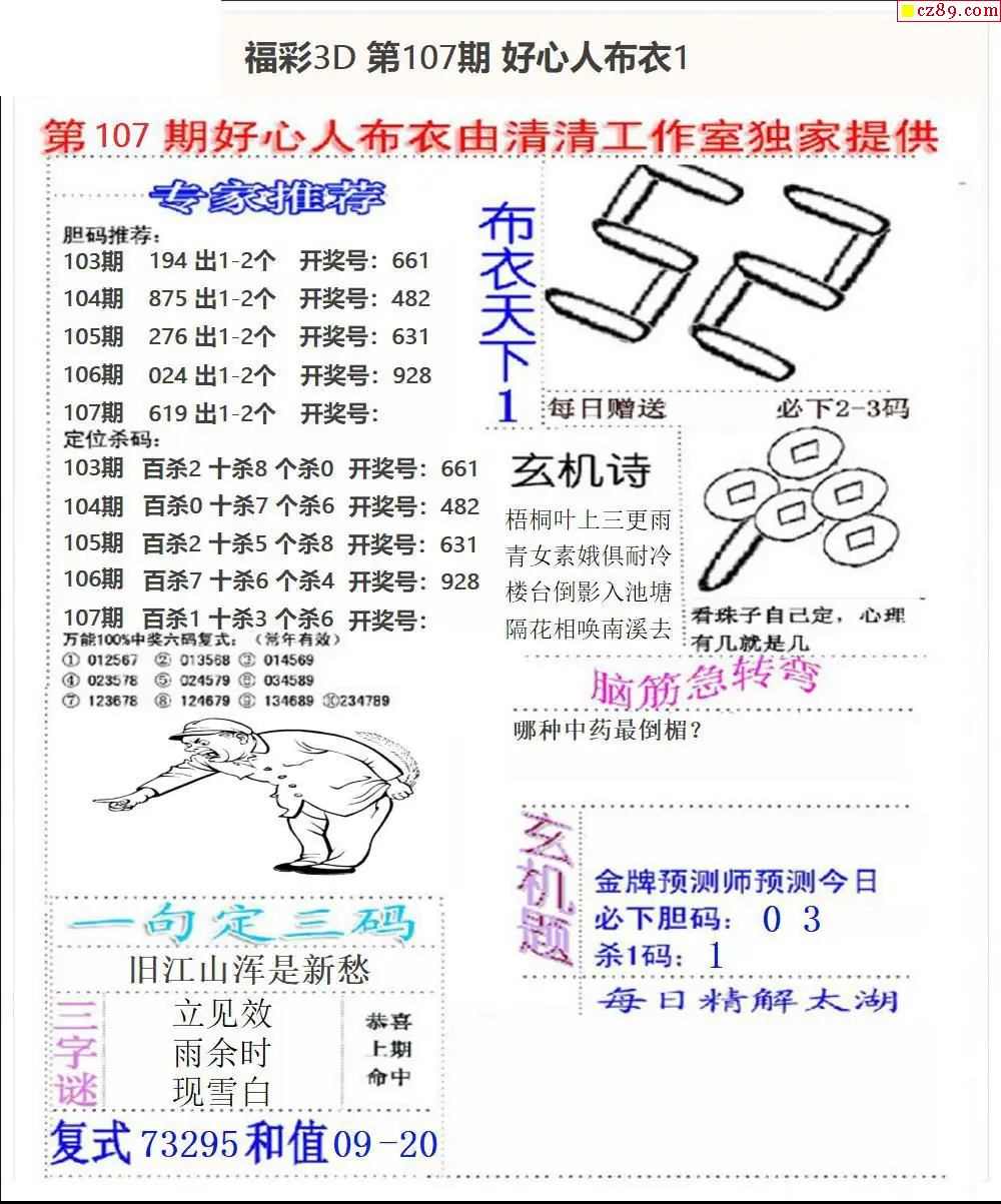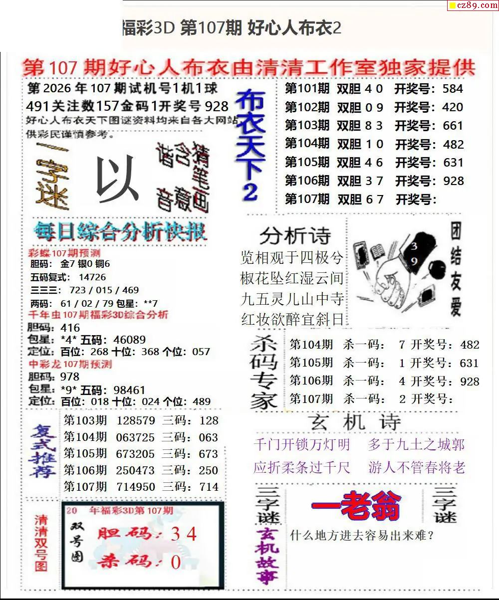 好心布衣2026107期3d图谜