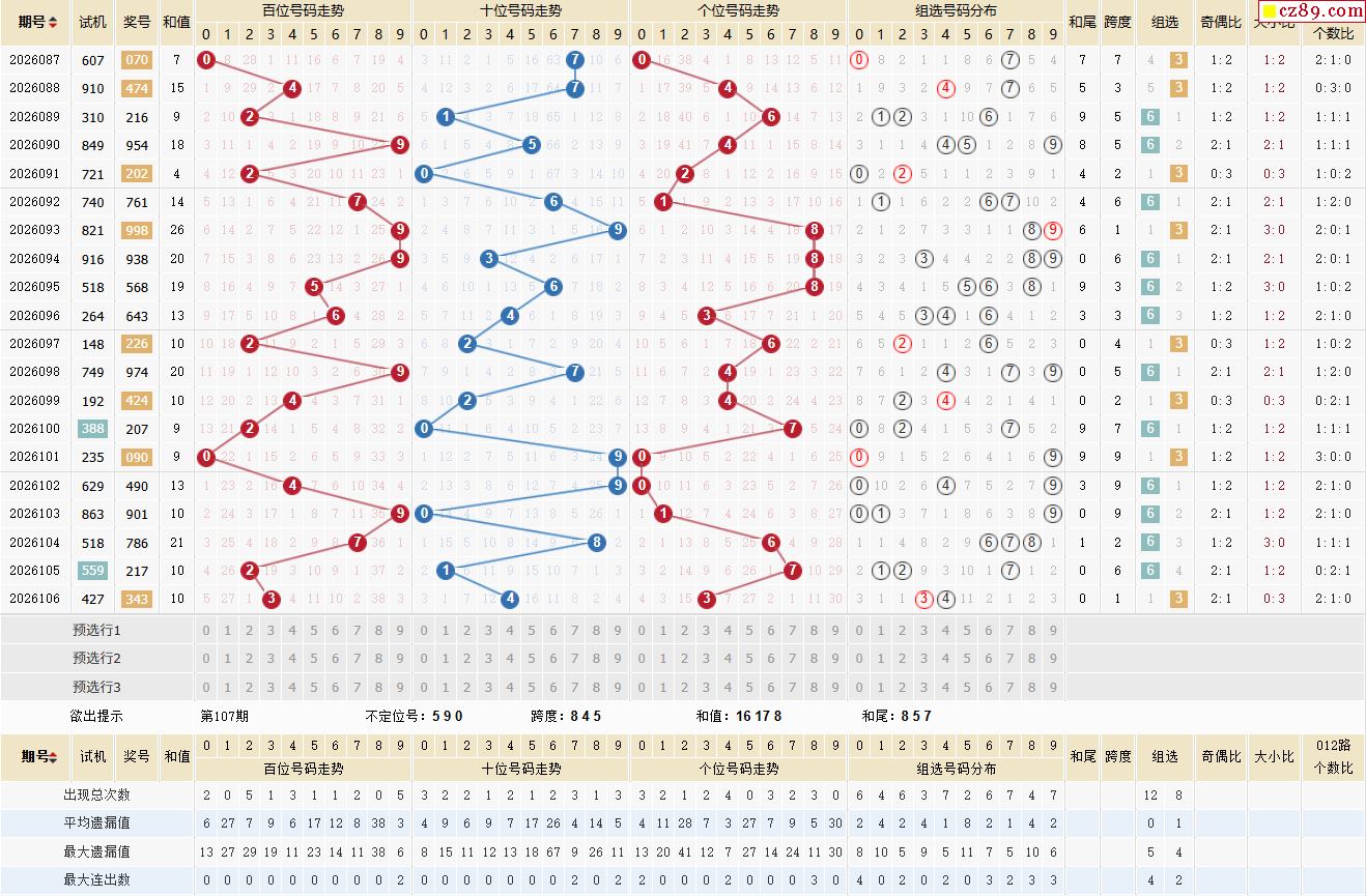 26年107期彩宝贝专家体彩P3杀号定码图表