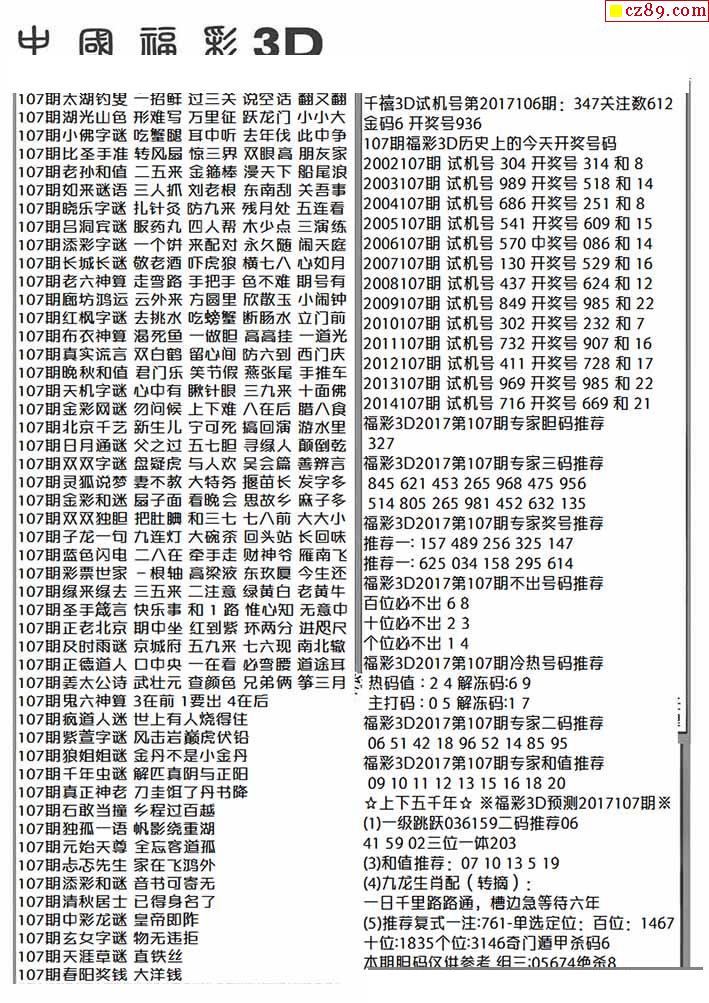 2026107期3D图谜汇总(一)