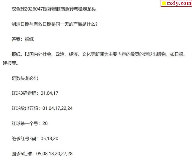 流年26年047期双色球动脑筋急转弯龙头字谜