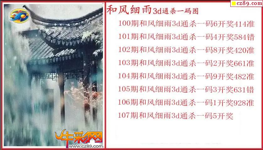 26年107期3d 和风细雨通杀一码图