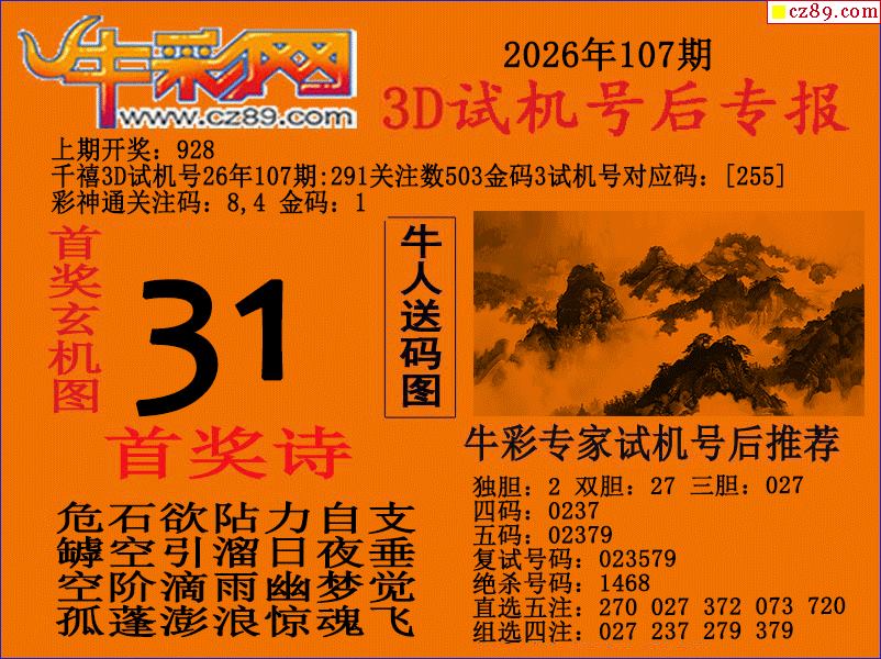 牛彩版3D预测彩报图26年107期打印版