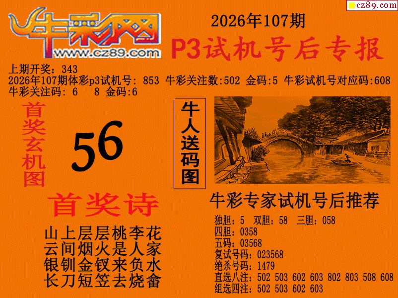 2026年107期牛彩网体彩P3画迷图谜汇总分享
