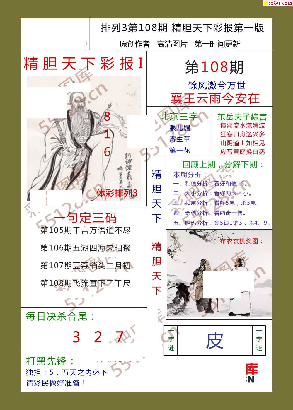 精胆天下彩报108期体彩p3图谜