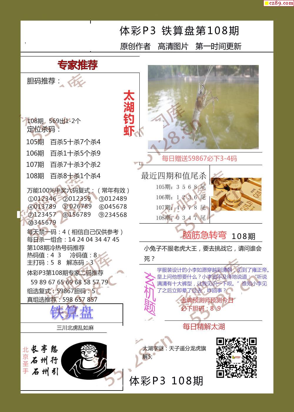 小小虎彩报108期体彩p3图谜