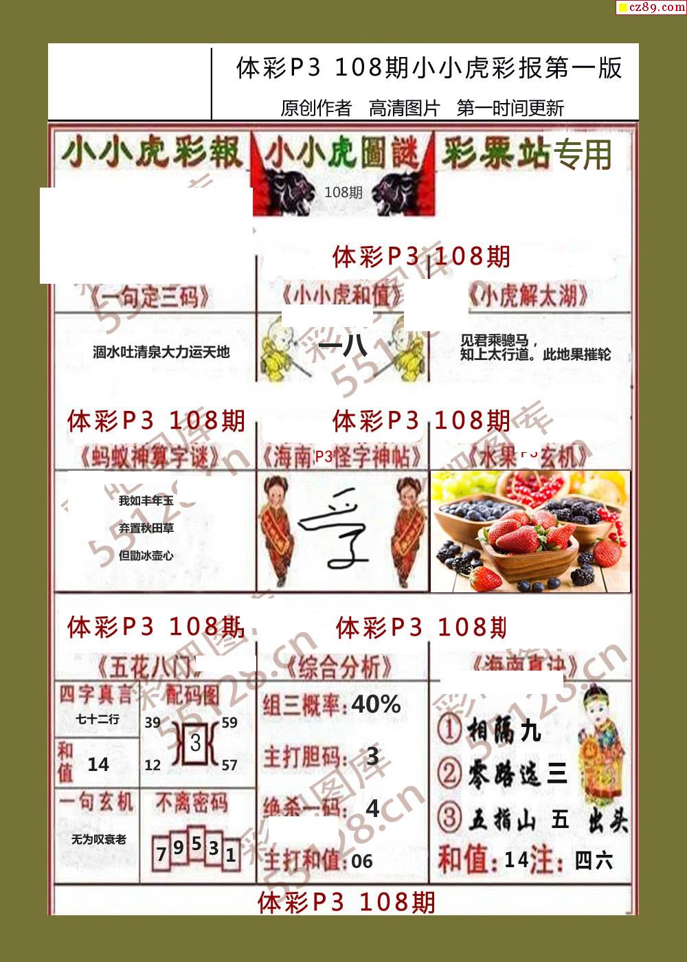 2026年108期牛彩网体彩P3画迷图谜汇总分享