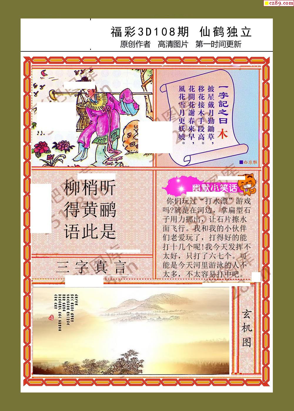 密图玄机108期福彩3d字画谜