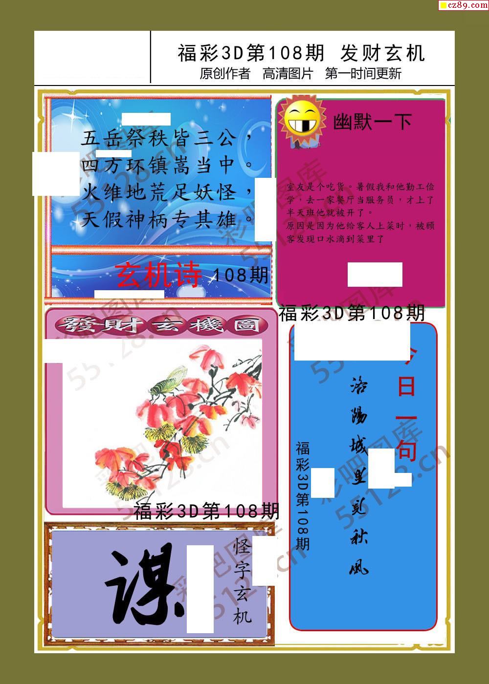 发财玄机26年108期福彩3d画谜