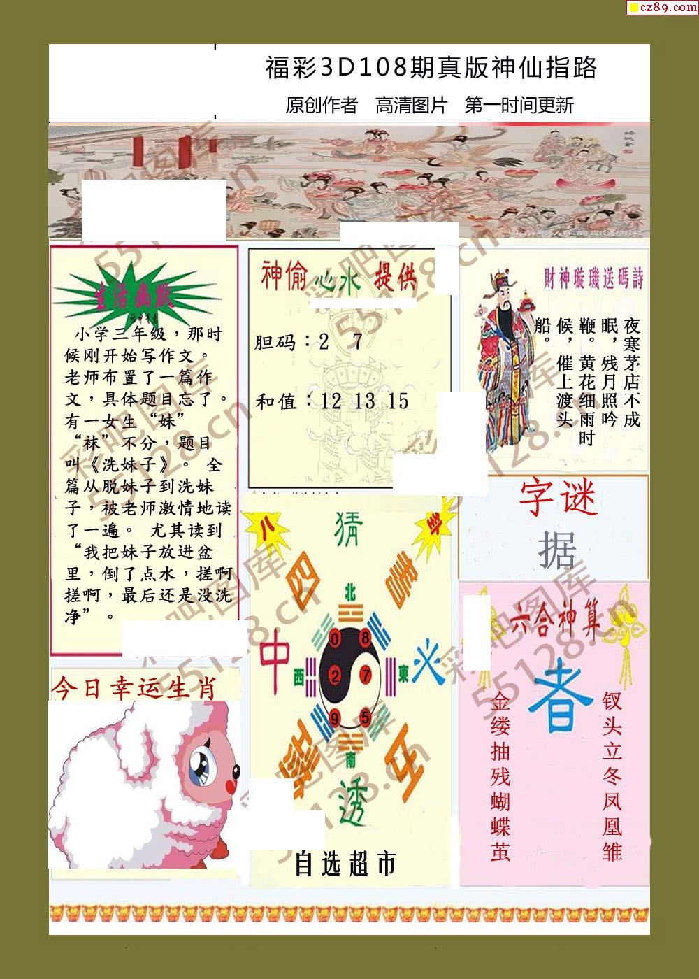 26年福彩3d108期欢乐小神仙预测图