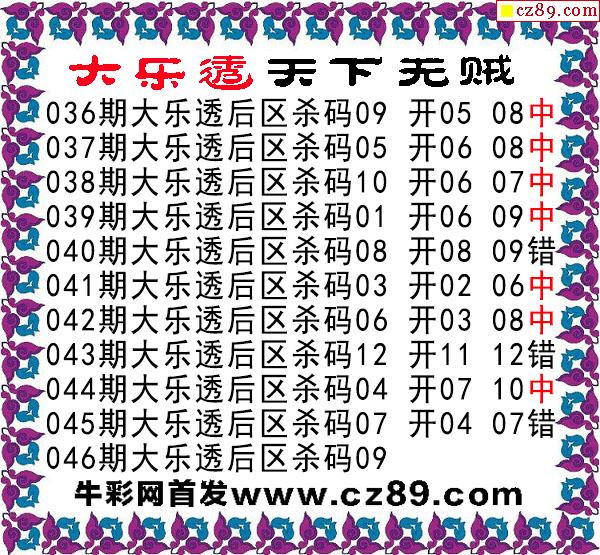 大乐透046期牛彩特邀专家前区后区杀号定胆图表