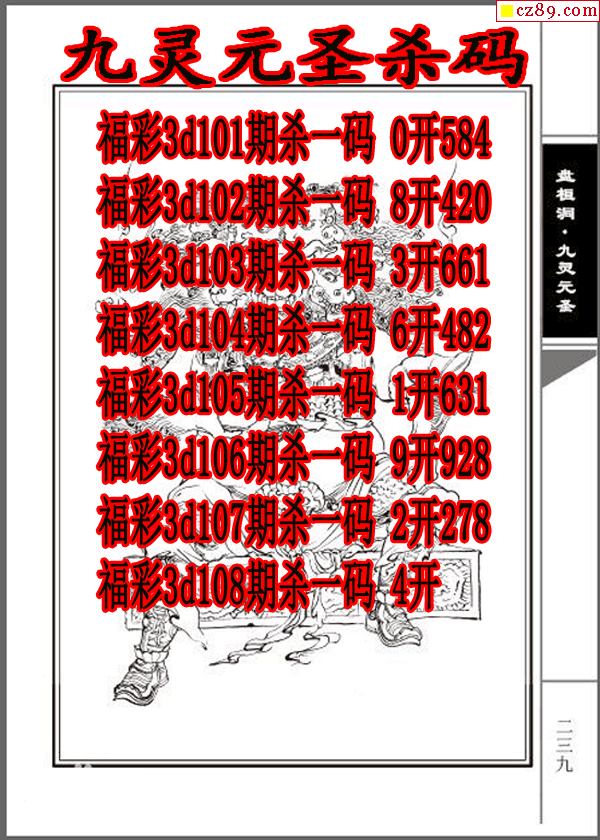 九灵元圣杀码2026108期3d图谜(原创)