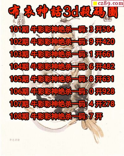 牛彩彩神杀码2026108期3d图谜(原创)