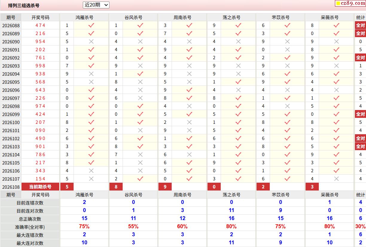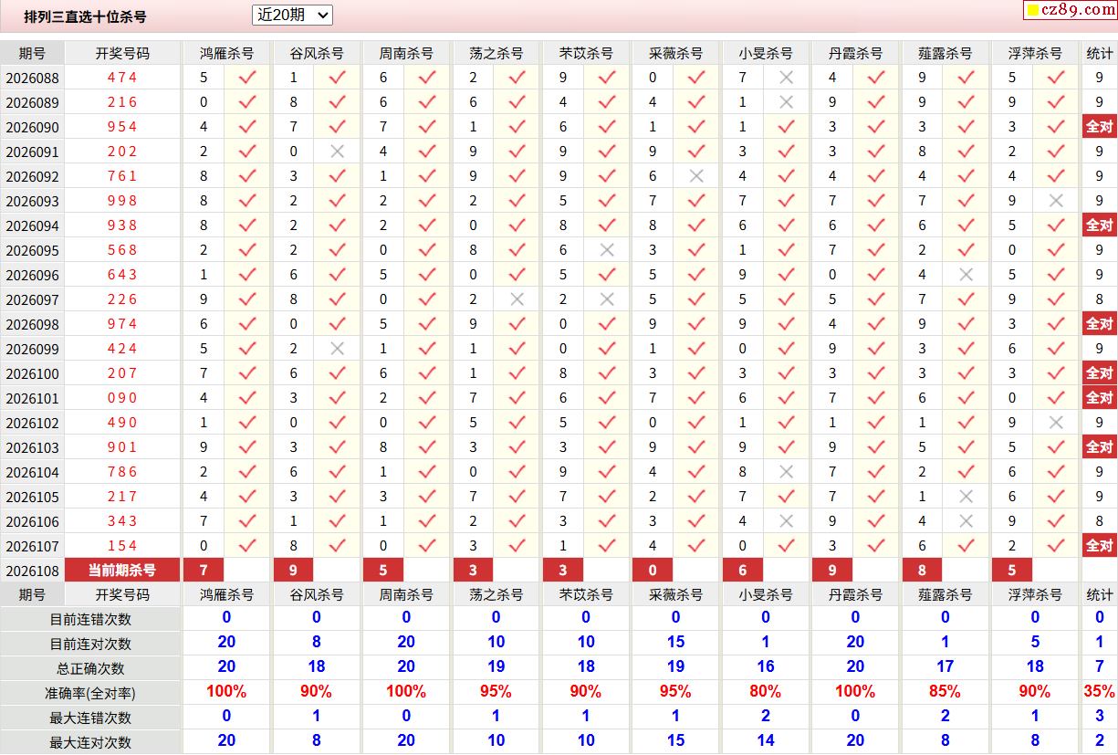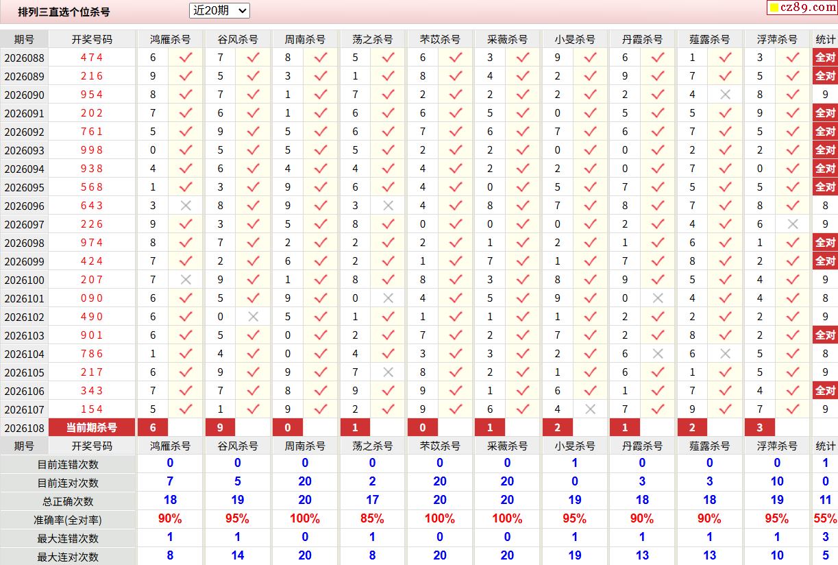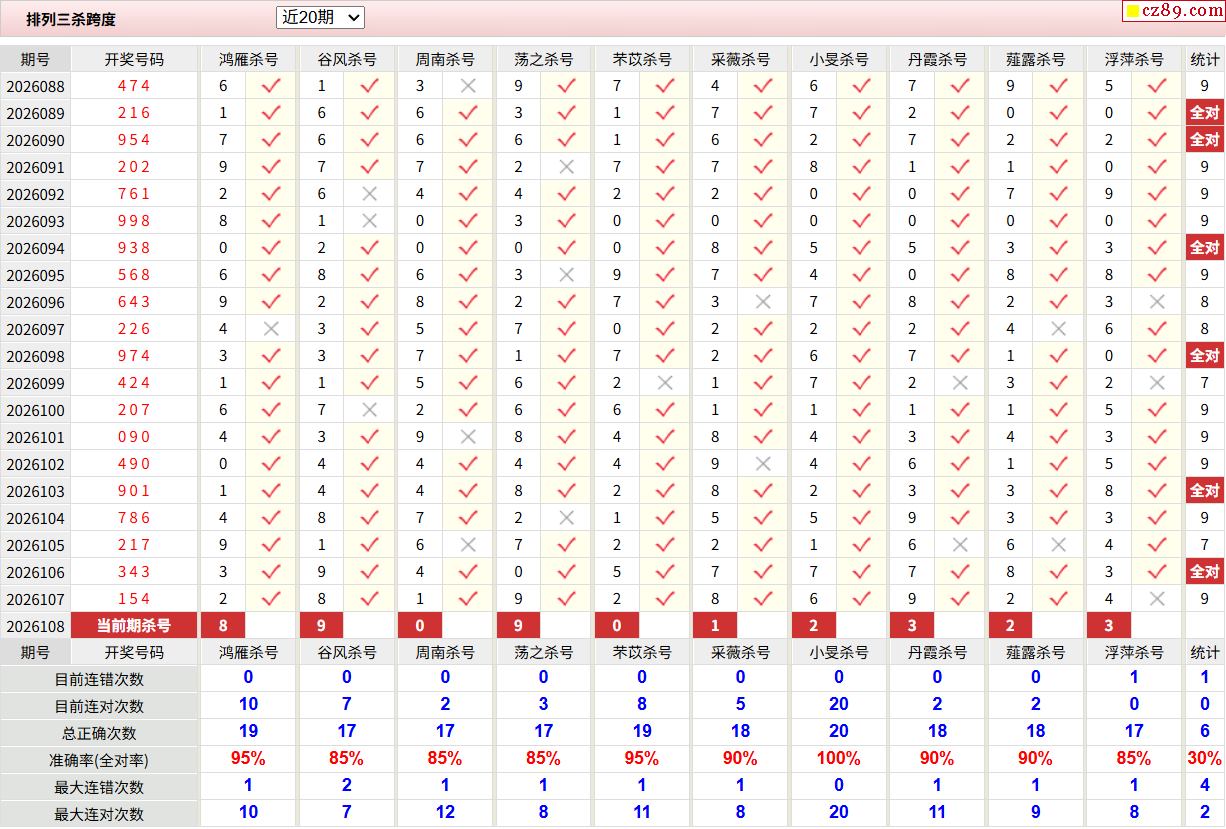 26年108期彩宝贝专家体彩P3杀号定码图表