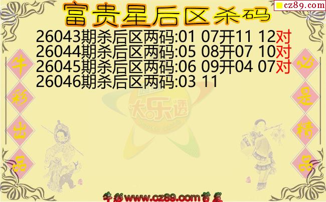 大乐透2026046期富贵星后区杀码图谜