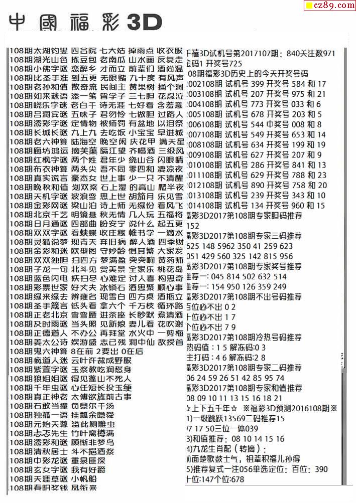 2026108期3D图谜汇总(八)