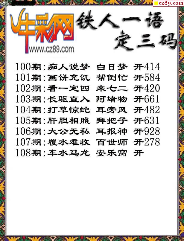 福彩3D2026108期铁人一句定三码字图谜