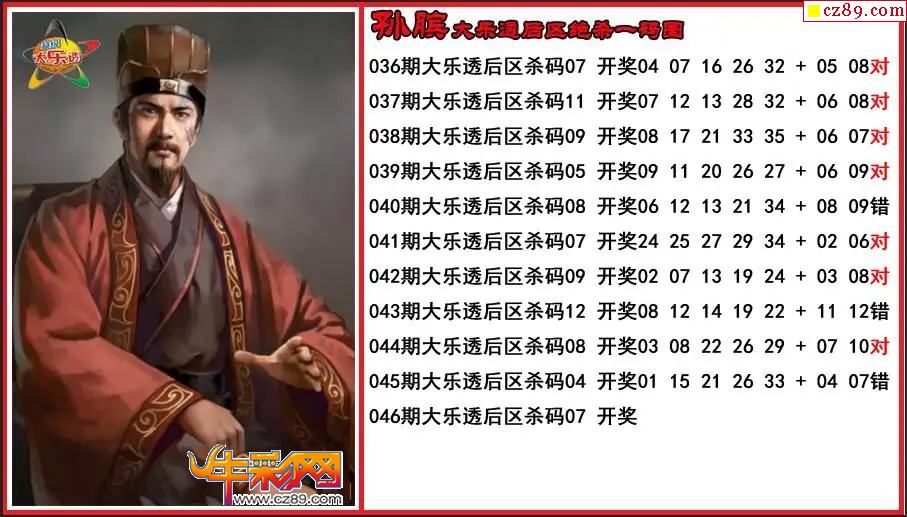 大乐透046期孙膑后区绝杀一码图