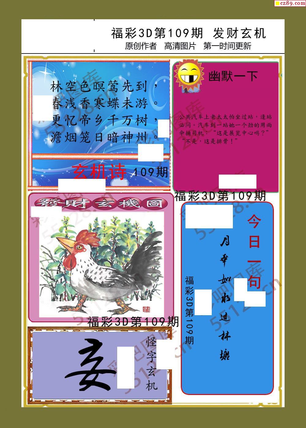 发财玄机26年109期福彩3d画谜