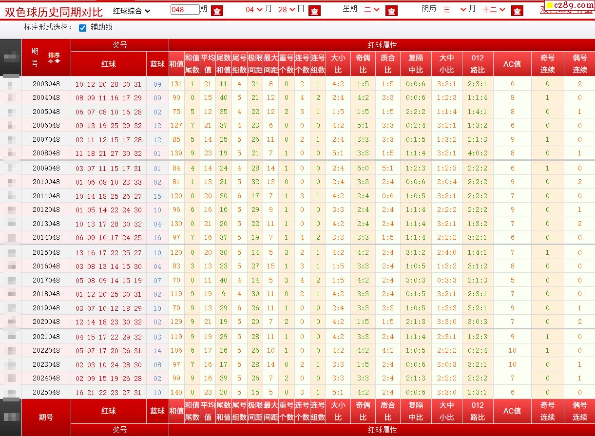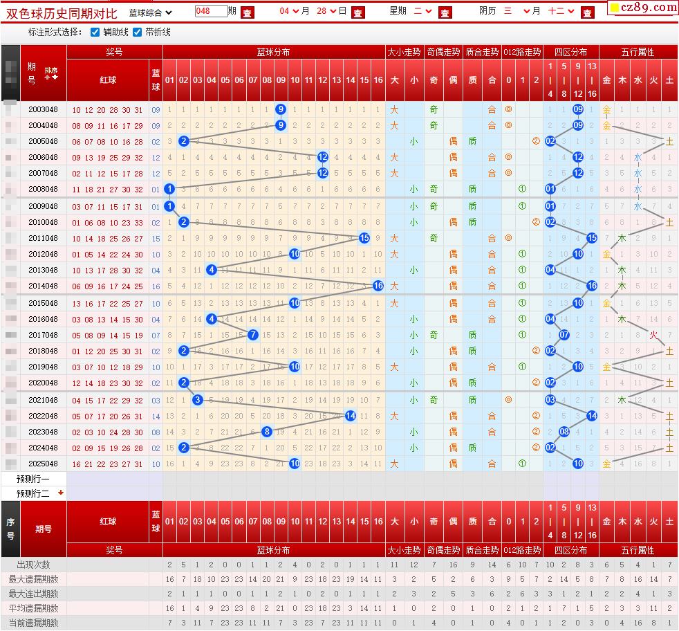 048期双色球历史同期对比图