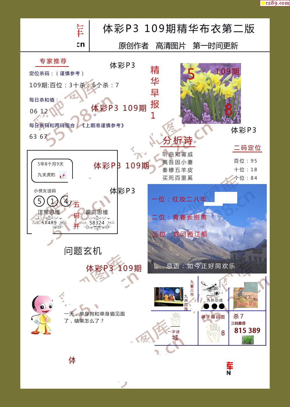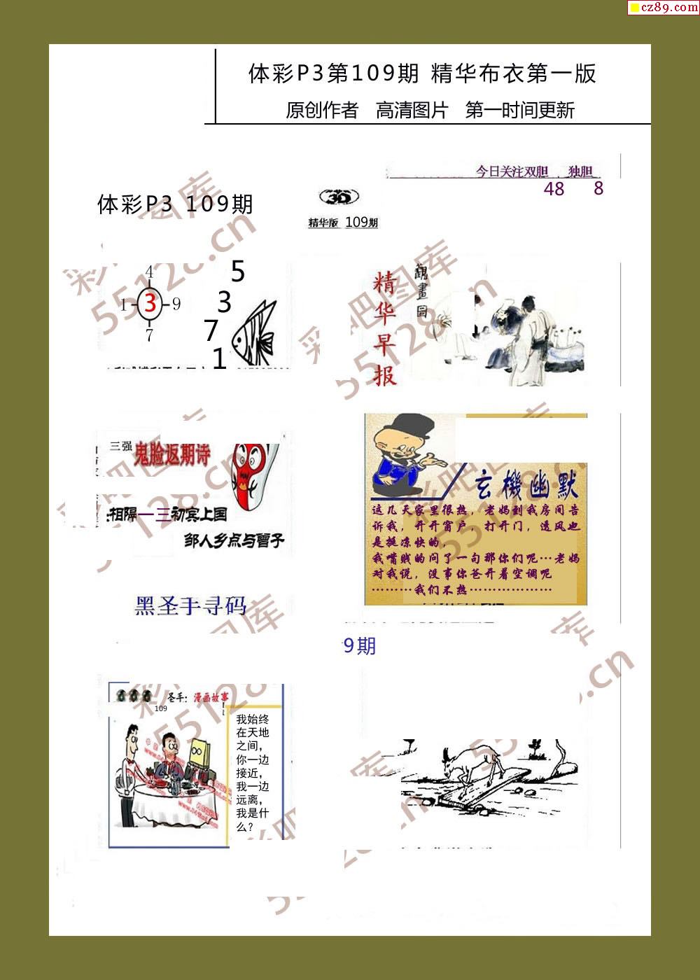 精华布衣彩报109期体彩p3图谜