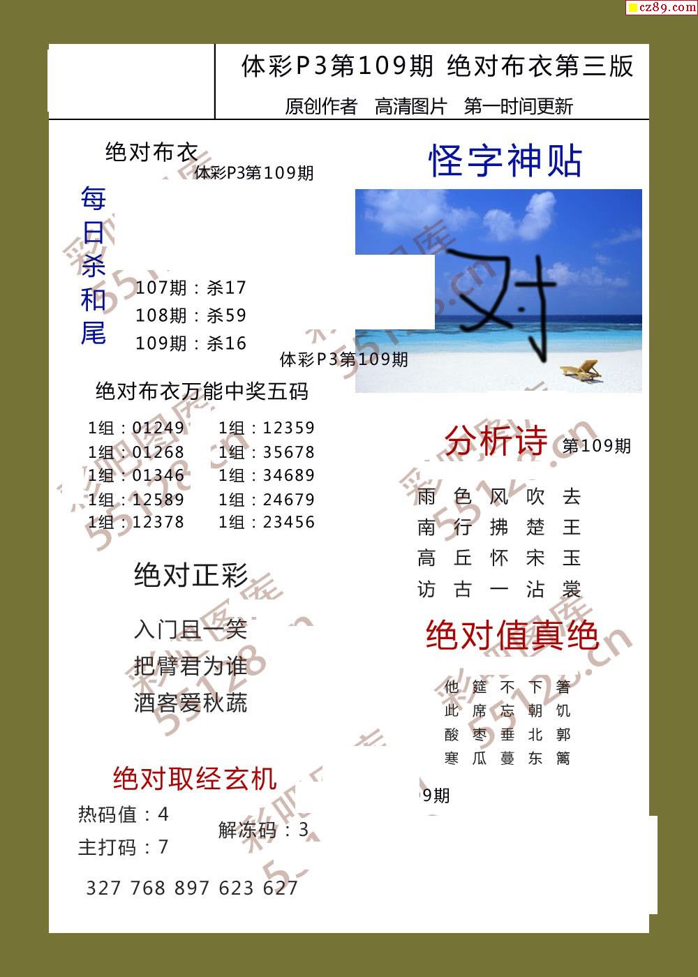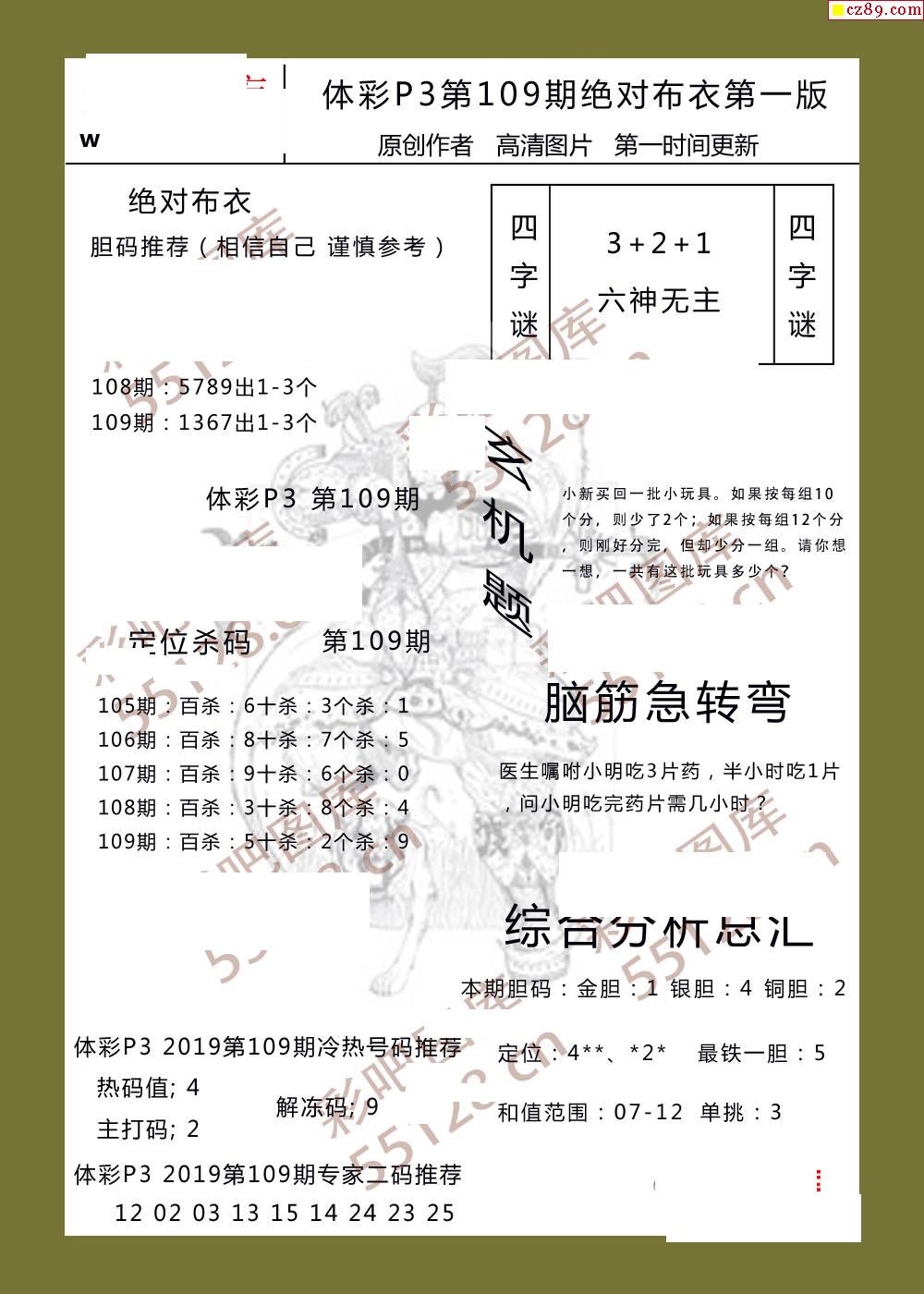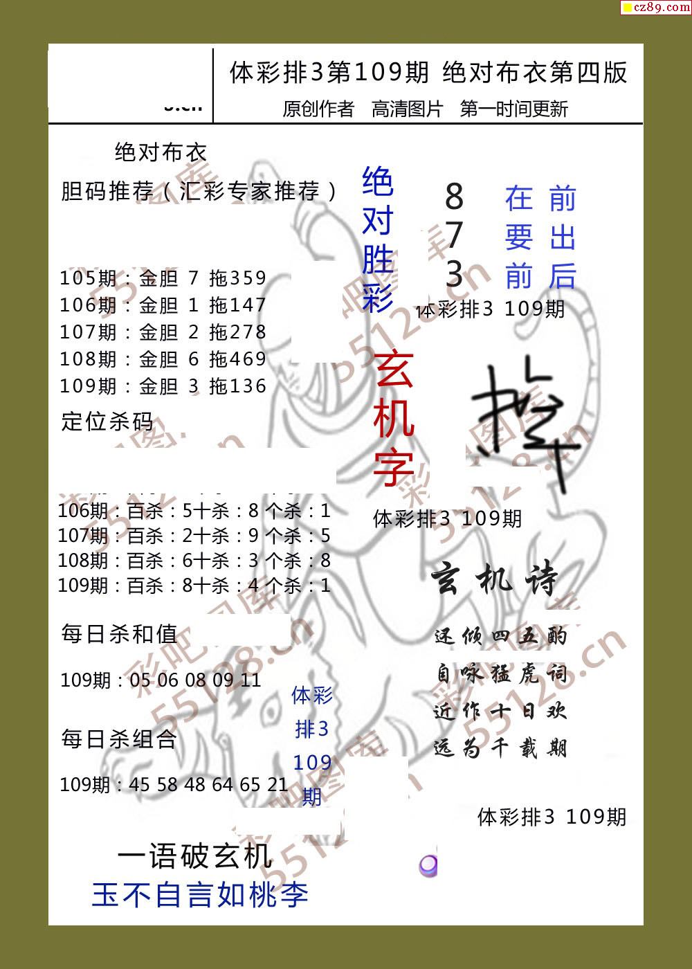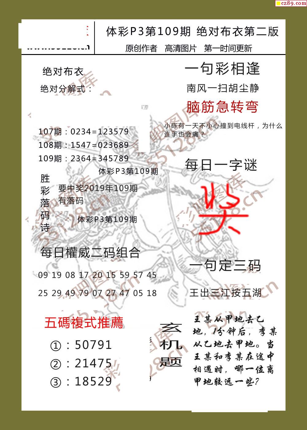 绝对布衣109期体彩p3图谜