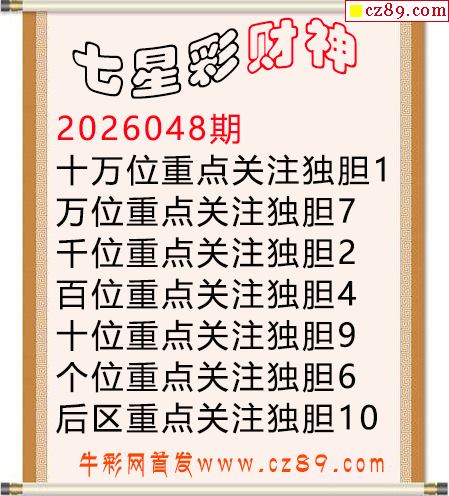 26年体彩七星彩048期 名扬天下本期推荐一注
