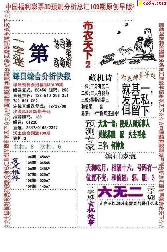 早版布衣2026108期3d图谜
