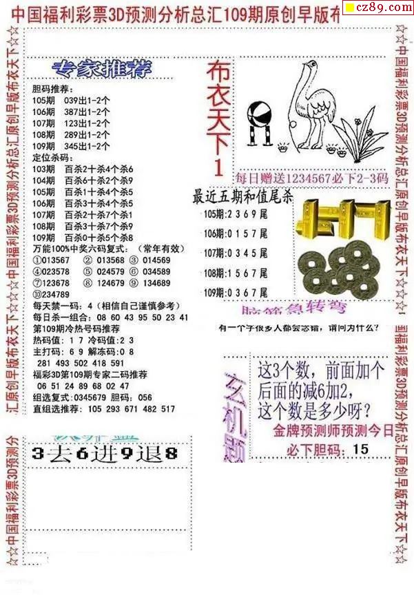 109期 彩吧彩报预测版
