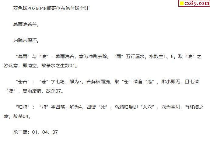 26年福彩双色球048期 哥伦布一句杀蓝球字谜