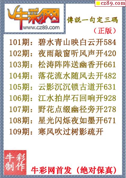 2026年109期七绝圣手3d和尾字谜【牛彩网...