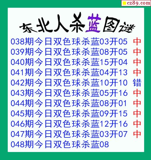 东北人杀蓝球048期双色球图谜 10中9
