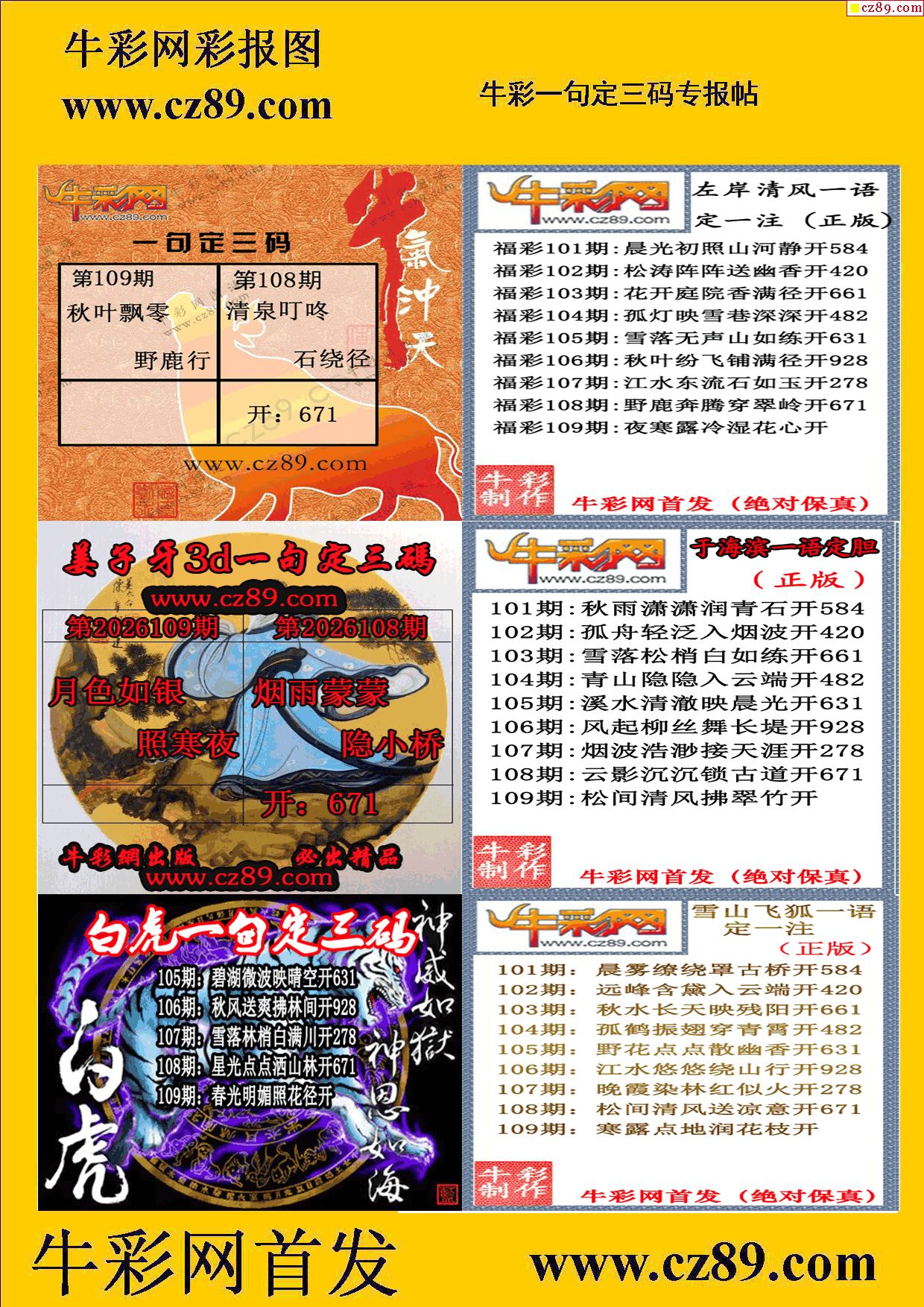 2026109期牛彩一句定三码
