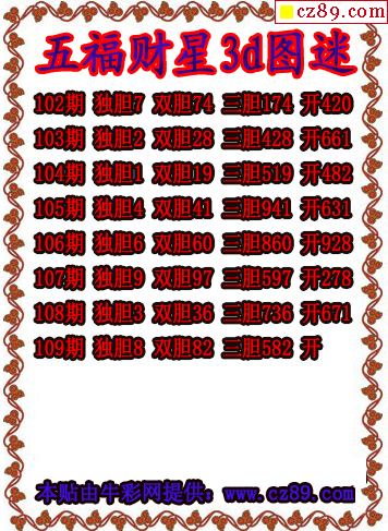 五福财星三胆2026109期3d图谜(原创)