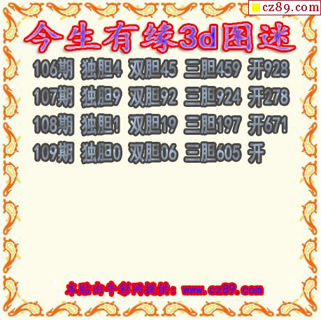 今生有缘三胆2026109期3d图谜(原创)