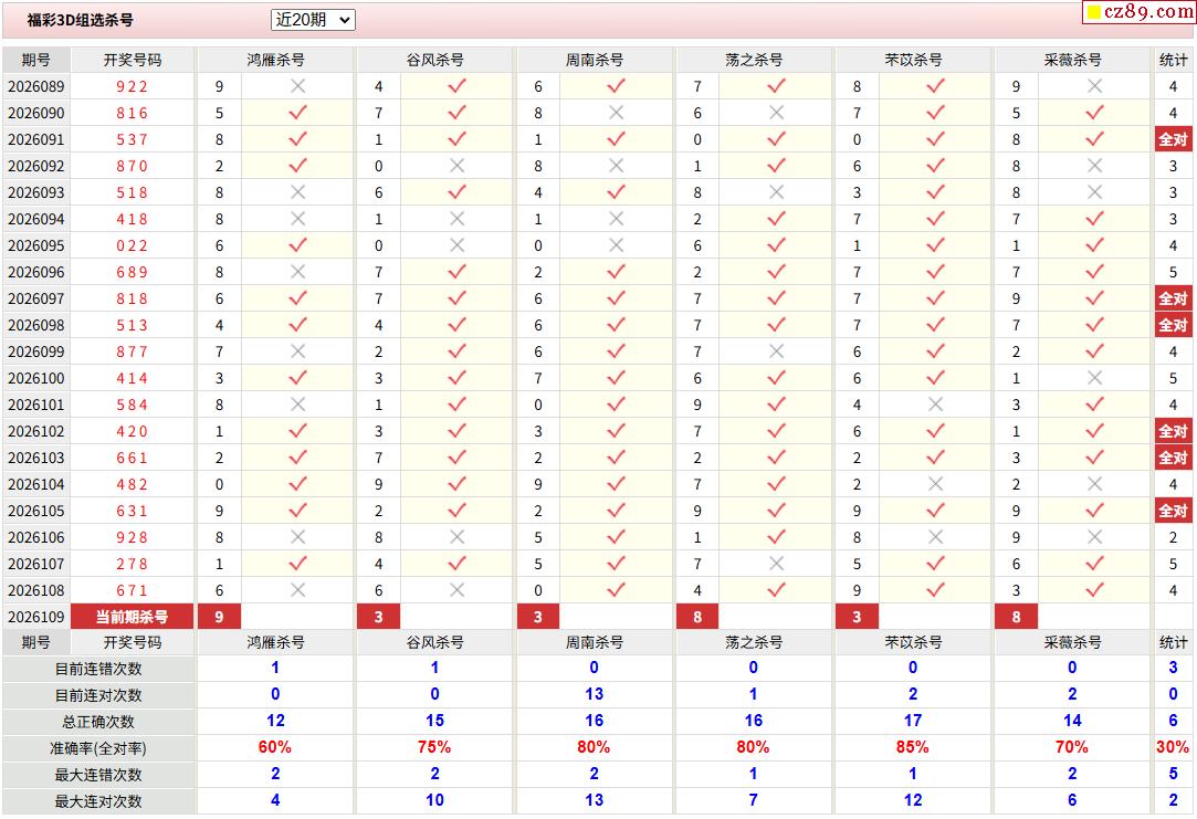 2026年109期福彩3d校验码