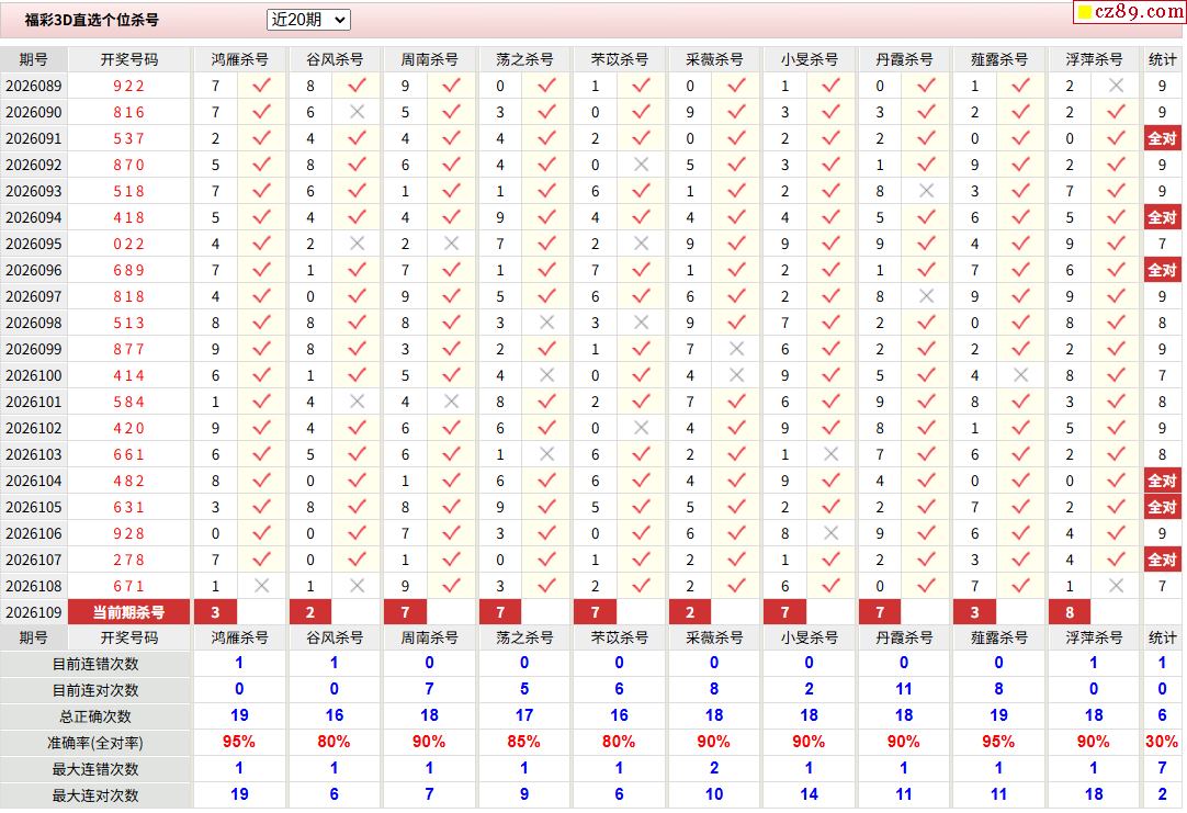 26年109期福彩3D彩神通关注码历史记录