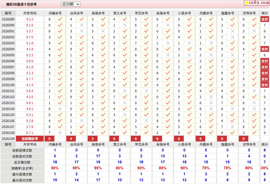 26年109期彩宝贝专家福彩3D杀号定码图表