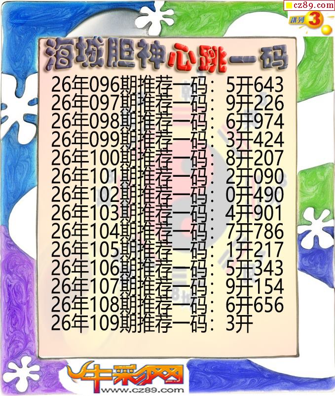 海城胆神心跳一码109期体彩P3图谜
