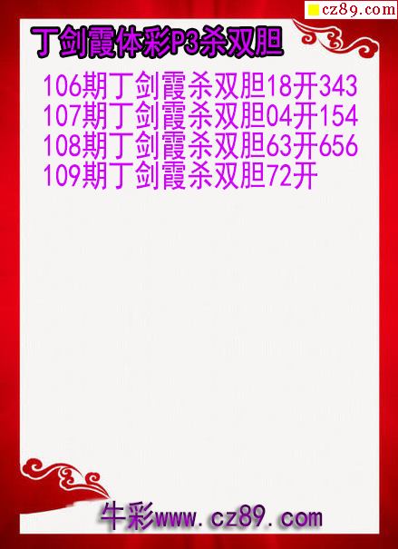 26年109期丁剑霞体彩P3杀双胆图