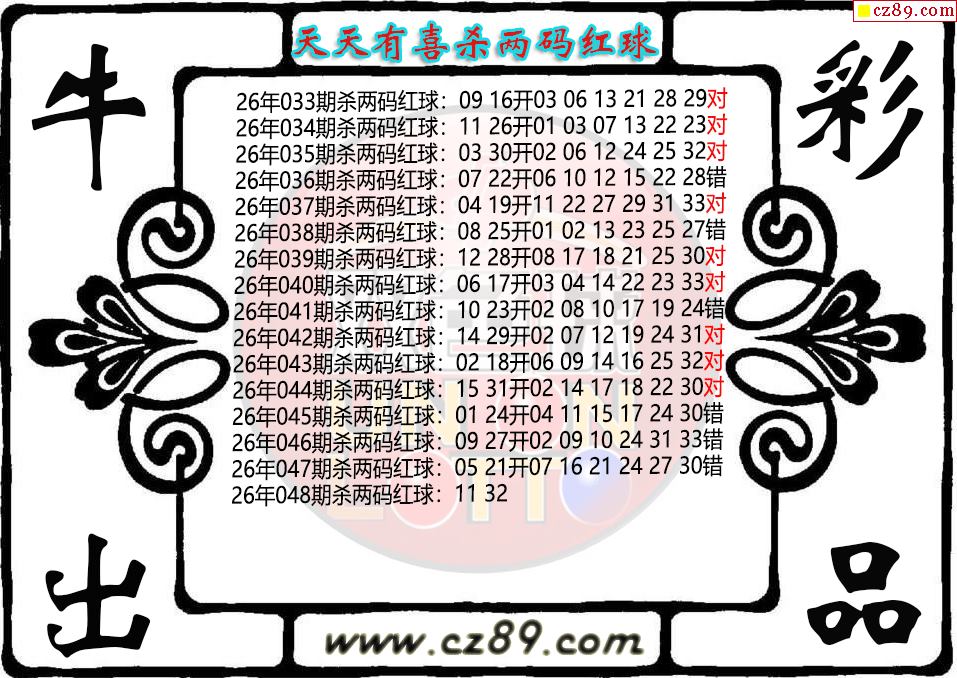 双色球048期 天天有喜杀两码红球图迷