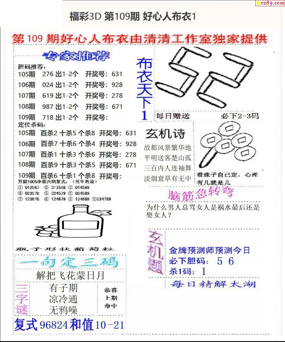 福彩3D2026109期图谜汇总