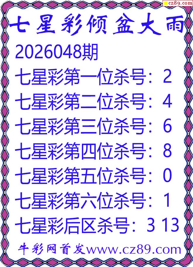 七星彩2026048期倾盆大雨杀号图谜