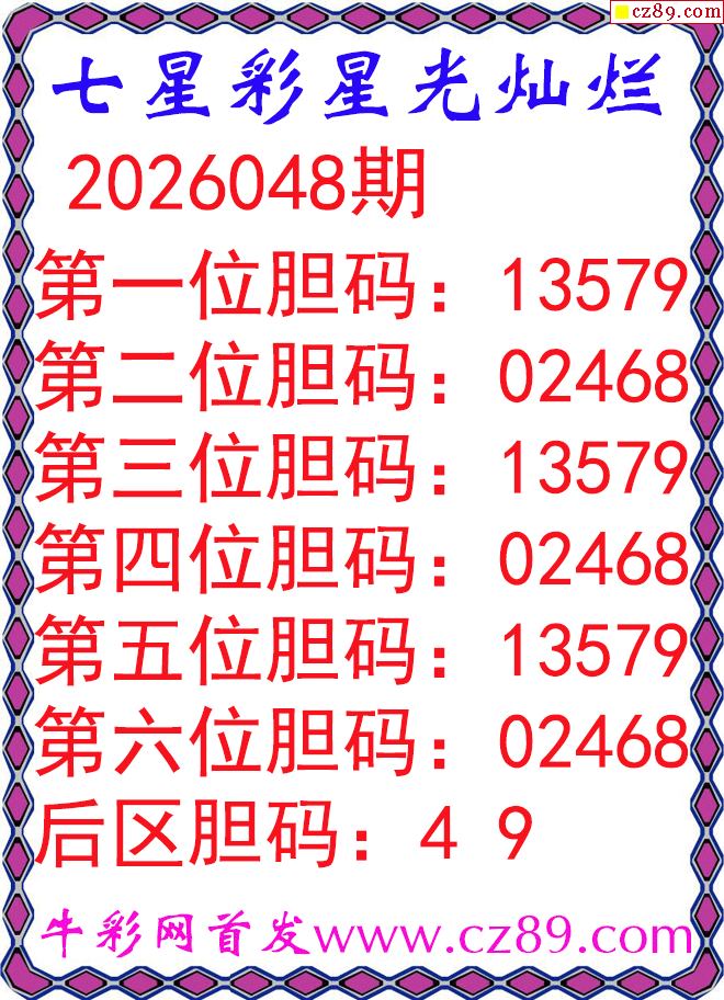 七星彩2026048期星光灿烂五码图谜