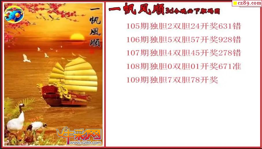 26年109期3d 一帆风顺今晚必下胆码图