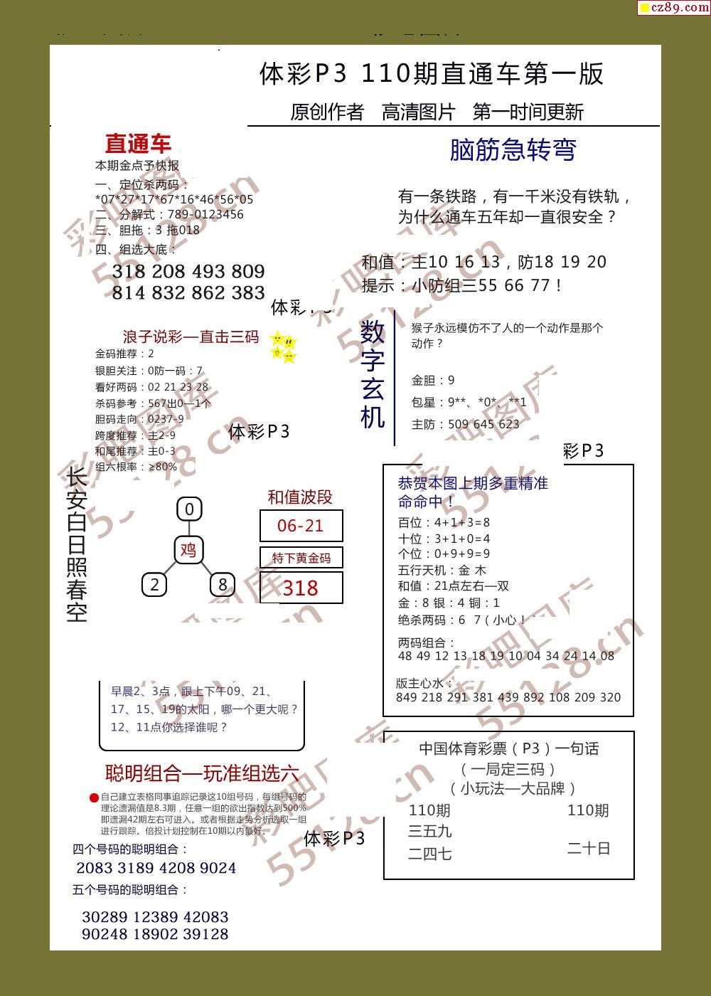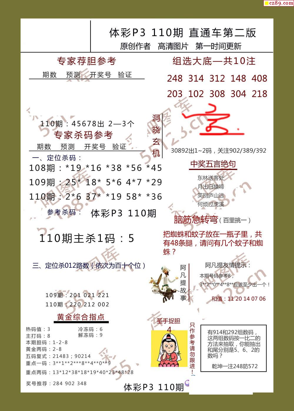 直通车AB版110期体彩p3图谜