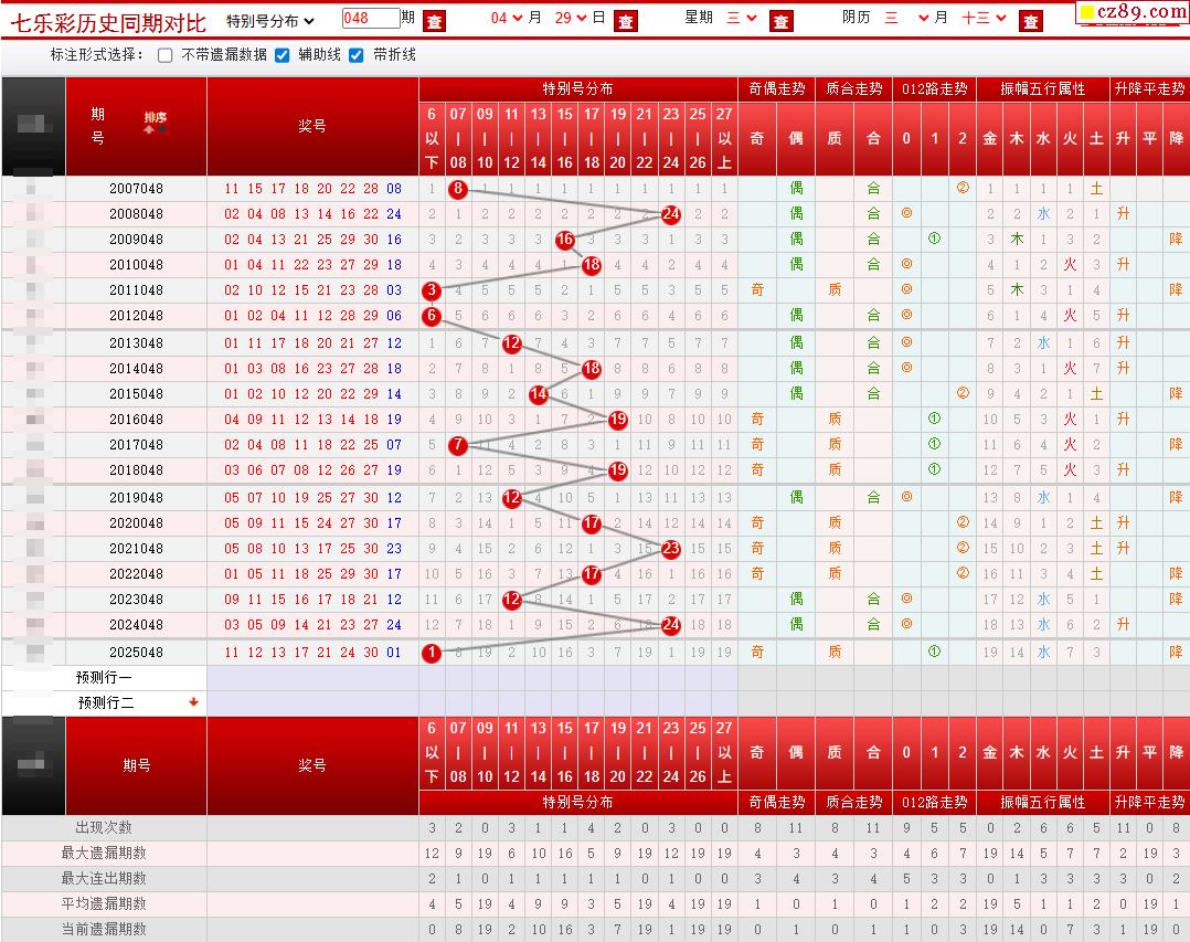 七乐彩048期 彩宝贝专家杀号码预测图表