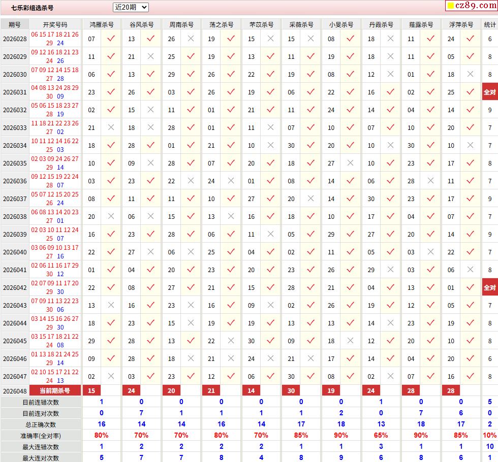 七乐彩048期 彩宝贝专家杀号码预测图表